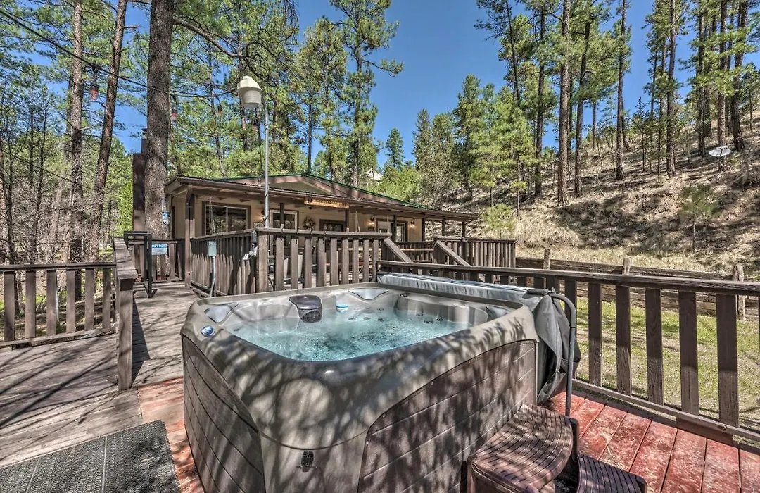 Situada a unos 3 km del Two Rivers Ruidoso River Park, Tranquil Cabin With Stream And Deck Near Dtwn Ruidoso! Villa ofrece un jacuzzi para relajarse. Los huéspedes pueden practicar senderismo en esta villa, situada a 2 km de Pillow's Funtrackers.